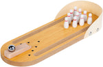 Ensemble de bowling de table en bois, amusant pour toute la famille. Facile et rapide à installer, il comprend une surface en bois, 1 bille et 10 quilles.
