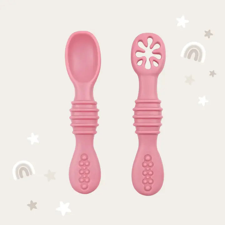 Cuillères d'entraînement pour bébés pour l'auto alimentation - Rose
