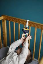 Le Hochet Chat de la Collection Gabin Lapin s'accroche partout avec son lien velcro.