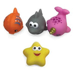 Cet ensemble comprend quatre poissons différents, chacun conçu pour s'éclairer et rendre l'heure du bain plus amusante pour votre tout-petit.  Ces jouets de bain ont été testés conformément aux normes en garantissant leur conformité au marquage CE et aux réglementations danoises supplémentaires.