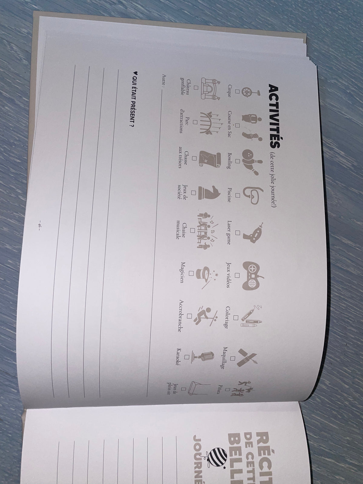 Un joli livre pour garder précieusement chaque souvenirs des anniversaires de votre enfant. Thème de la fête, les amis présents ce jour là, les activités effectuées ou encore la photo du joli gâteau, ce livre vous permettra de noter chaque détail afin de conserver précieusement tous ces jolis moments !