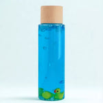 Découvrez cette belle bouteille sensorielle qui renferme des petits canards, des paillettes de plusieurs formes et couleurs ainsi que des billes d'eau. Le liquide contenu dans la bouteille est un mélange d'eau et de glycérine végétale totalement inoffensive pour les enfants. La couleur du liquide est obtenue à partir de colorant alimentaire, sans danger pour nos petites et grandes crapules. Créant un monde magique de découvertes, elle saura émerveiller vos petits explorateurs en herbe ! 🌟